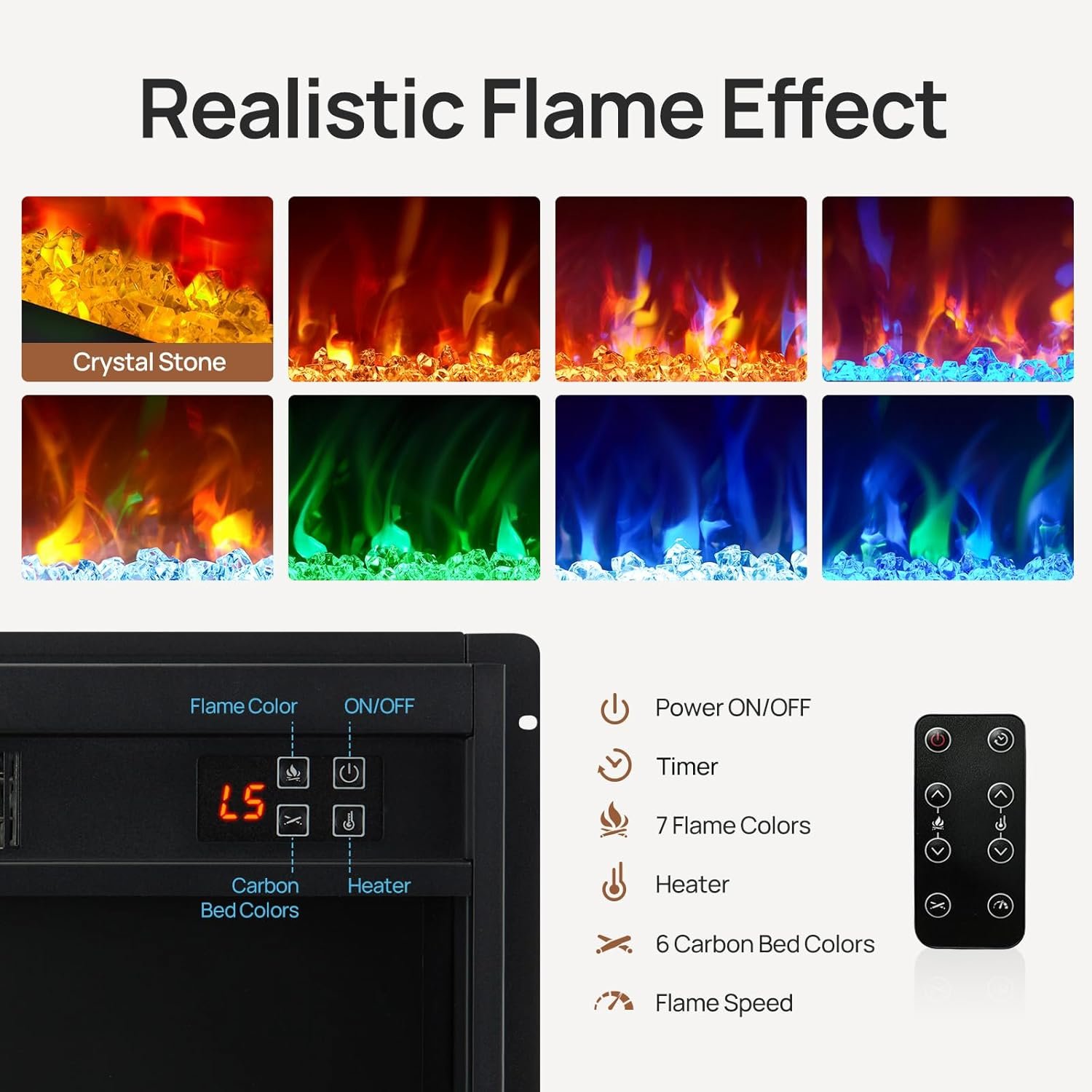 - Fireplace Power: 1400 W electric insert with adjustable flame